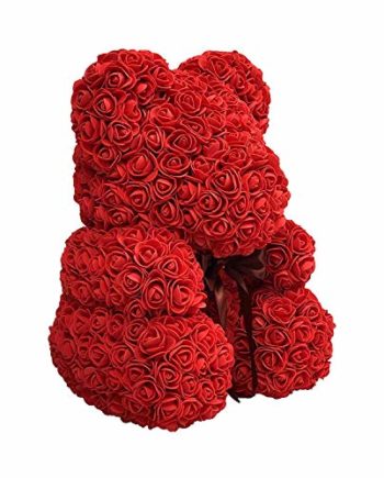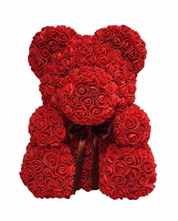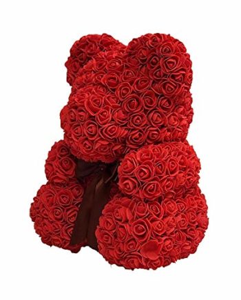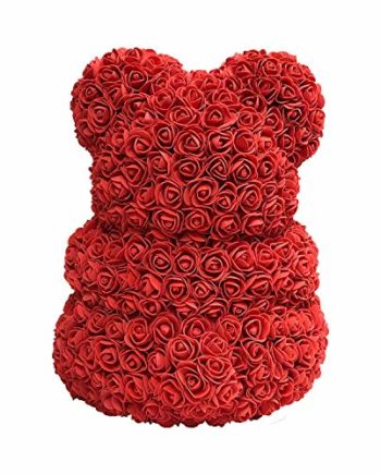 Offrez à votre bien-aimé un cadeau éternel de roses. Ours en peluche magnifiquement décoré, fait de rose synthétique tendre, avec une couleur rouge romantique.