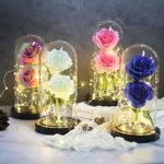 Design ambidextre: Notre rose enchantée faite de soie de qualité, ressemble à une vraie rose, la tige était facile à couper et à plier mais les pétales ont un aspect presque réel, ils sont doux et de couleur uniforme. Les roses jamais sèches fleurissent toujours, gardant votre amour frais et durant pour toujours.
