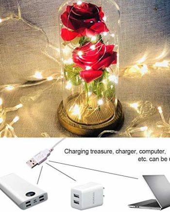 USB Powered: Il fonctionne avec une charge USB, pas de ligne superflue pour influencer toute la beauté. Il suffit de brancher l?alimentation, ces petites ampoules donneront un éclairage blanc chaud et éclatant. Vous pouvez faire une rose romantique à la main et profiter du moment excitant avec votre amoureux.