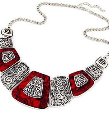 NOVADAB Ruby Marble Bohemian Art Statement Rouge Argent Plaqué Moderne Femmes Bijoux Collier