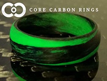 Men’s or Women’s Carbon Fiber Green Marbled Glow Ring – Handcrafted – Black and Green Glowing Band – Custom Band widths